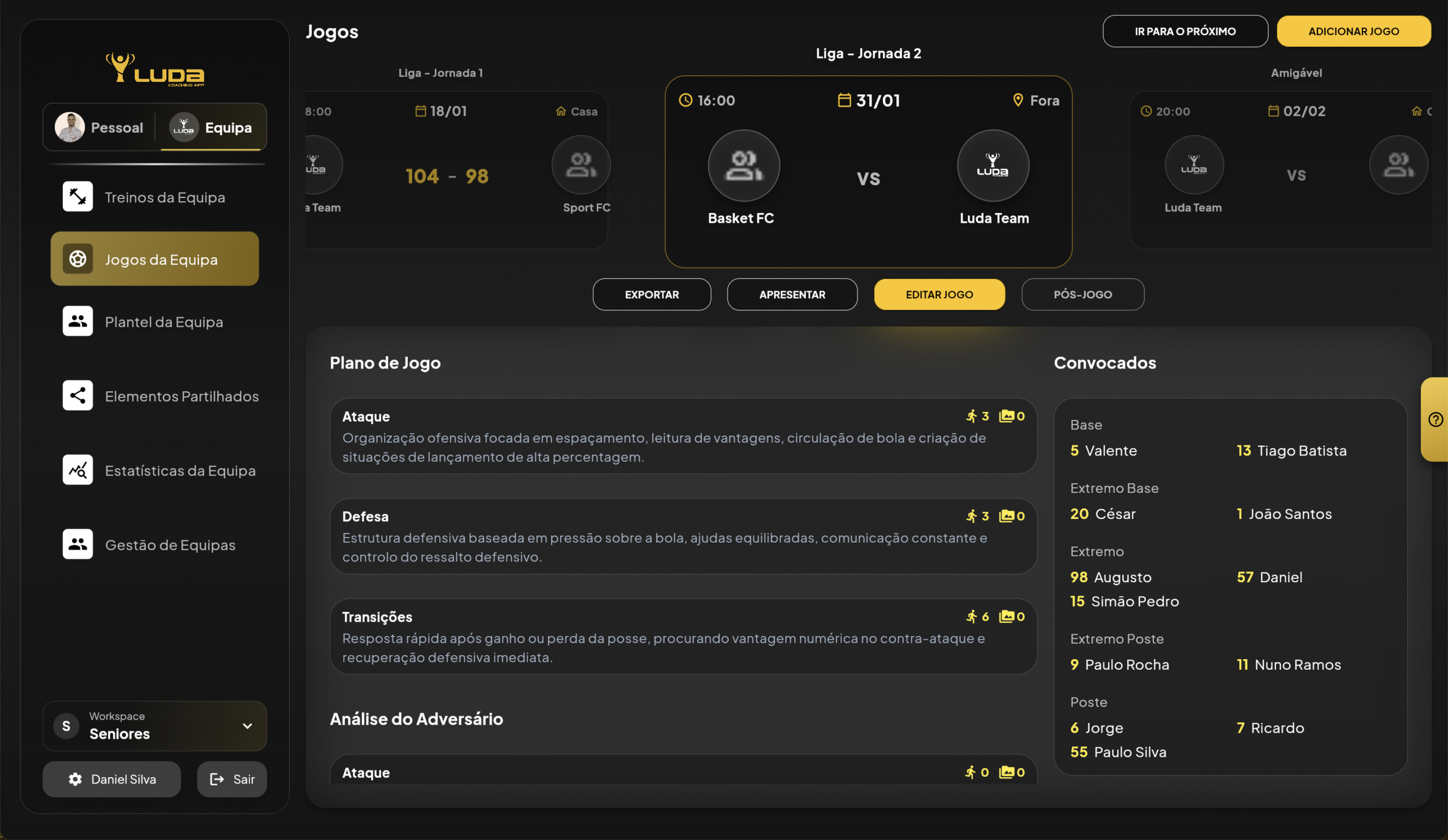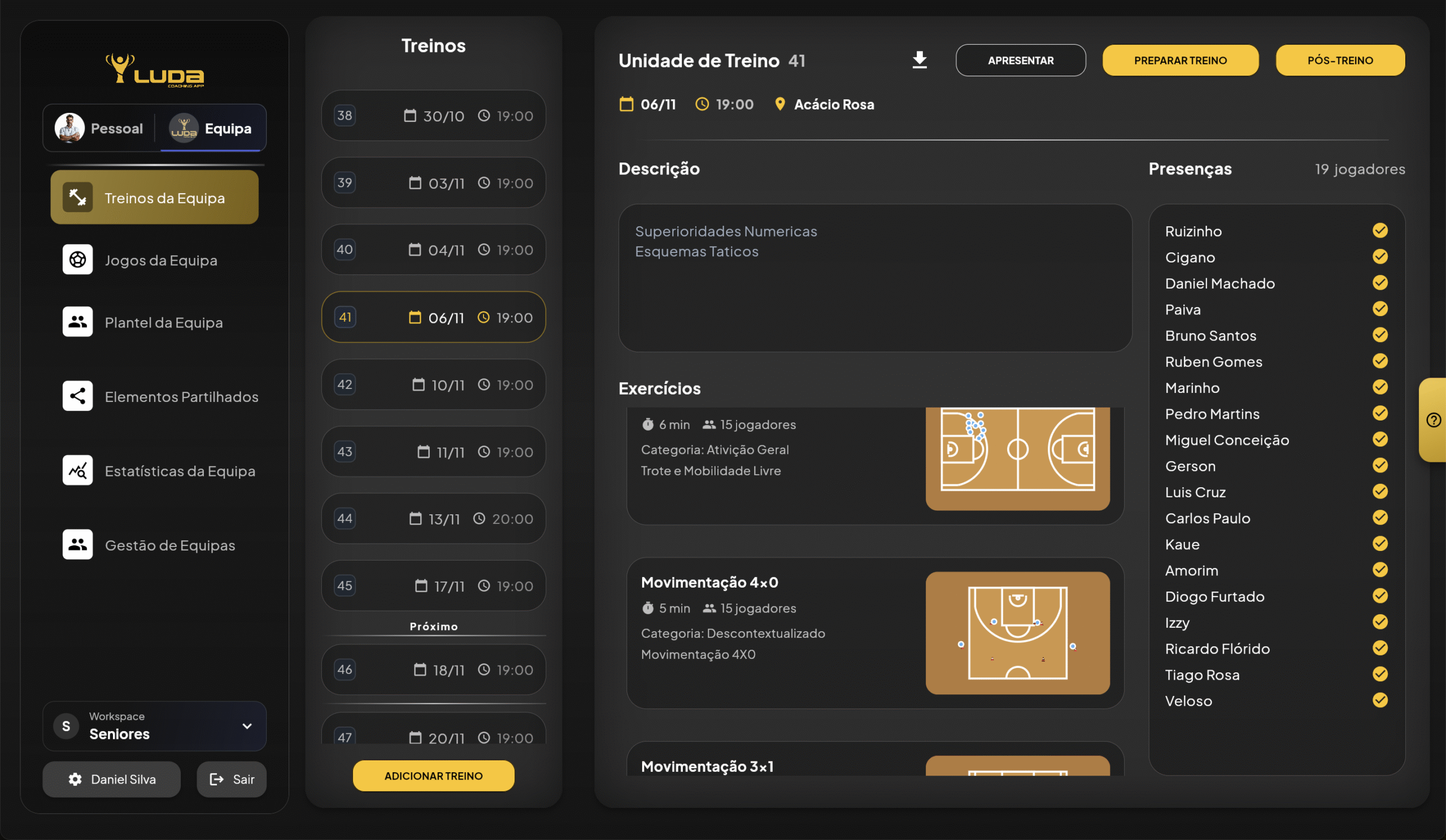 Treinos, exercícios, modelo de jogo e o teu calendário ficam guardados independentemente da equipa onde estejas.
