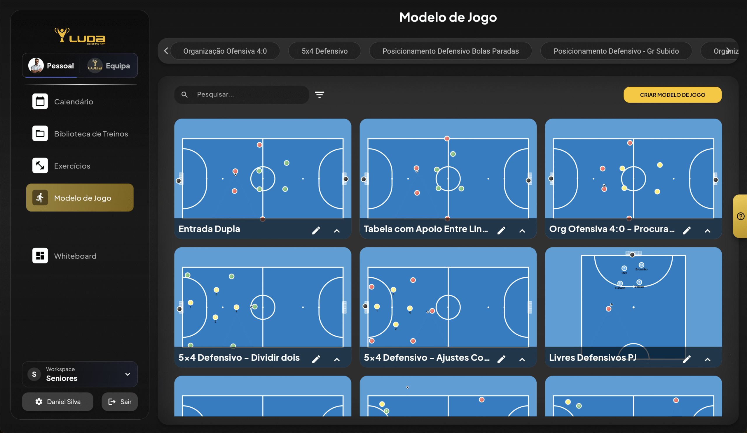 Treinos, exercícios, modelo de jogo e o teu calendário ficam guardados independentemente da equipa onde estejas.
